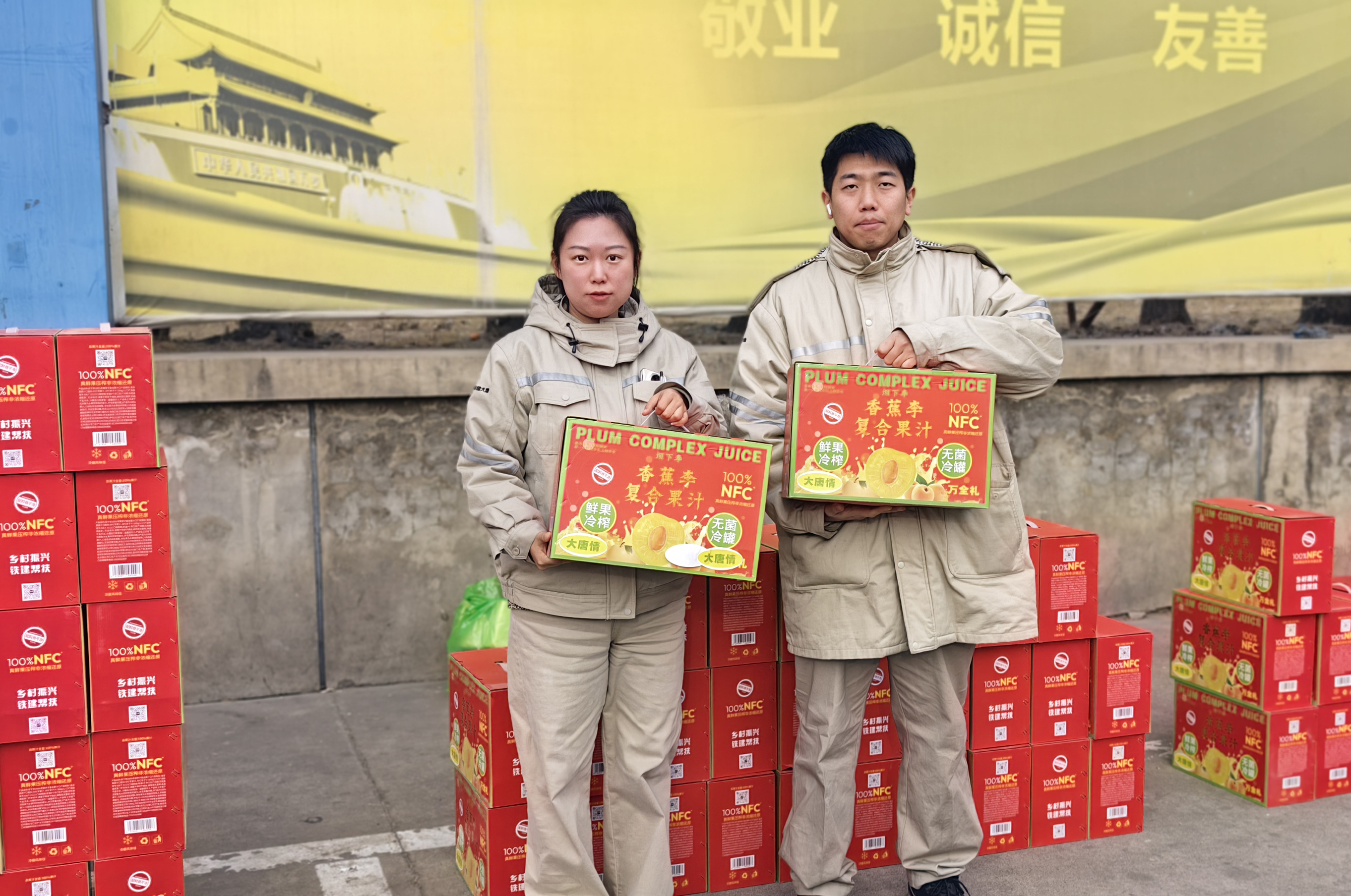 2025年,孫家小莊村遭受冰雹災害,大量桃、李滯銷,果農面臨嚴重損失。張家口發電公司積極響應市委組織部號召,主動對接該村,精準落實幫扶。經實地調研,決定采購1200箱由當地滯銷鮮果加工而成的果汁飲品,作為新春福利發放給全體職工。