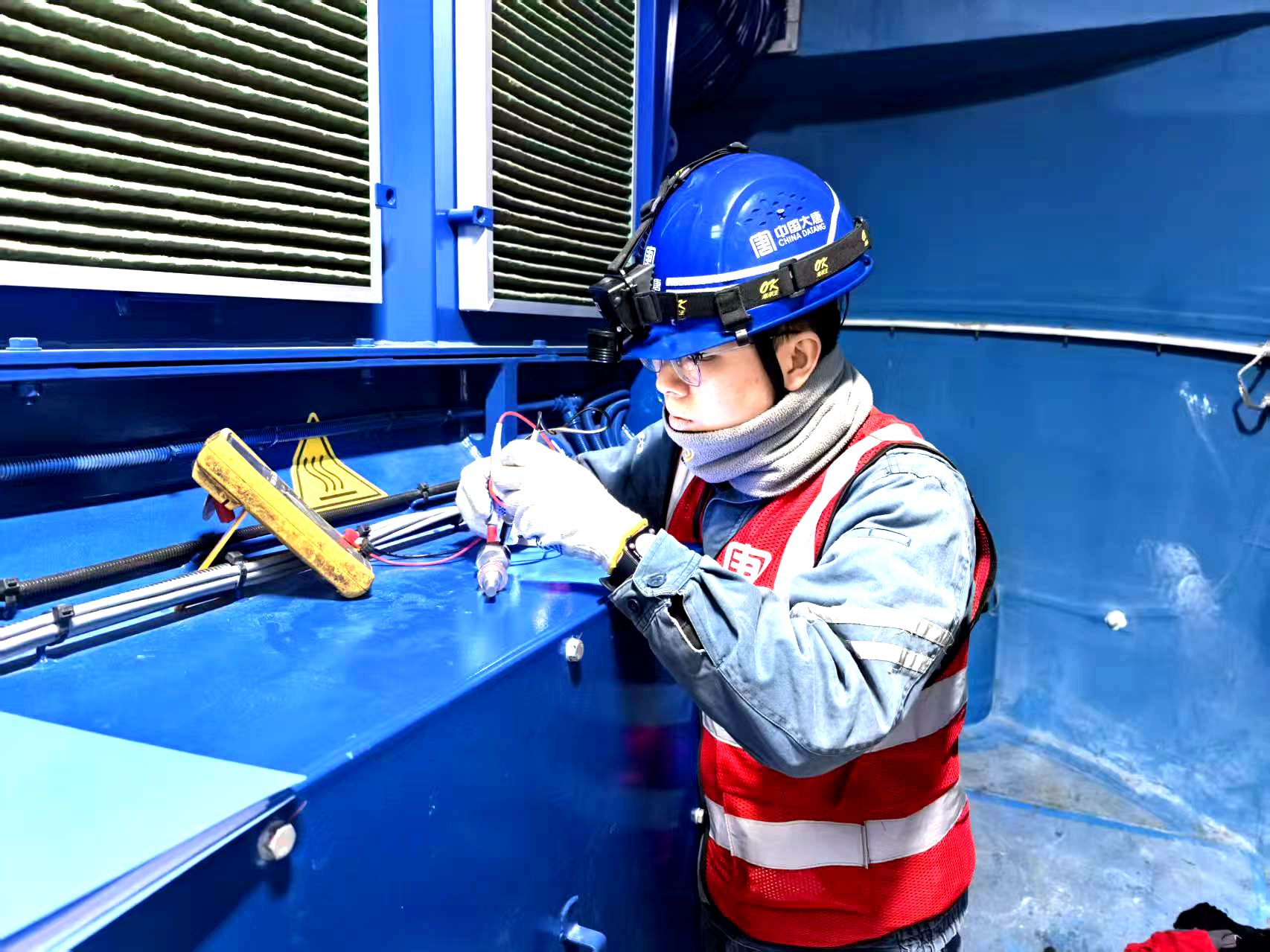 機艙蓋板剛掀開一道縫,凜冽的寒風就像無數冰粒砸在臉上。他下意識側過身用胳膊護住口鼻,借著風勢稍緩的瞬間猛地推開蓋板。頂著呼嘯的狂風,他順著機艙內部爬梯穩步挪到控制柜旁,迅速從工具包中掏出萬用表,“停電—驗電—掛牌”整套安全流程一氣呵成,動作干脆利落,沒有絲毫拖泥帶水。