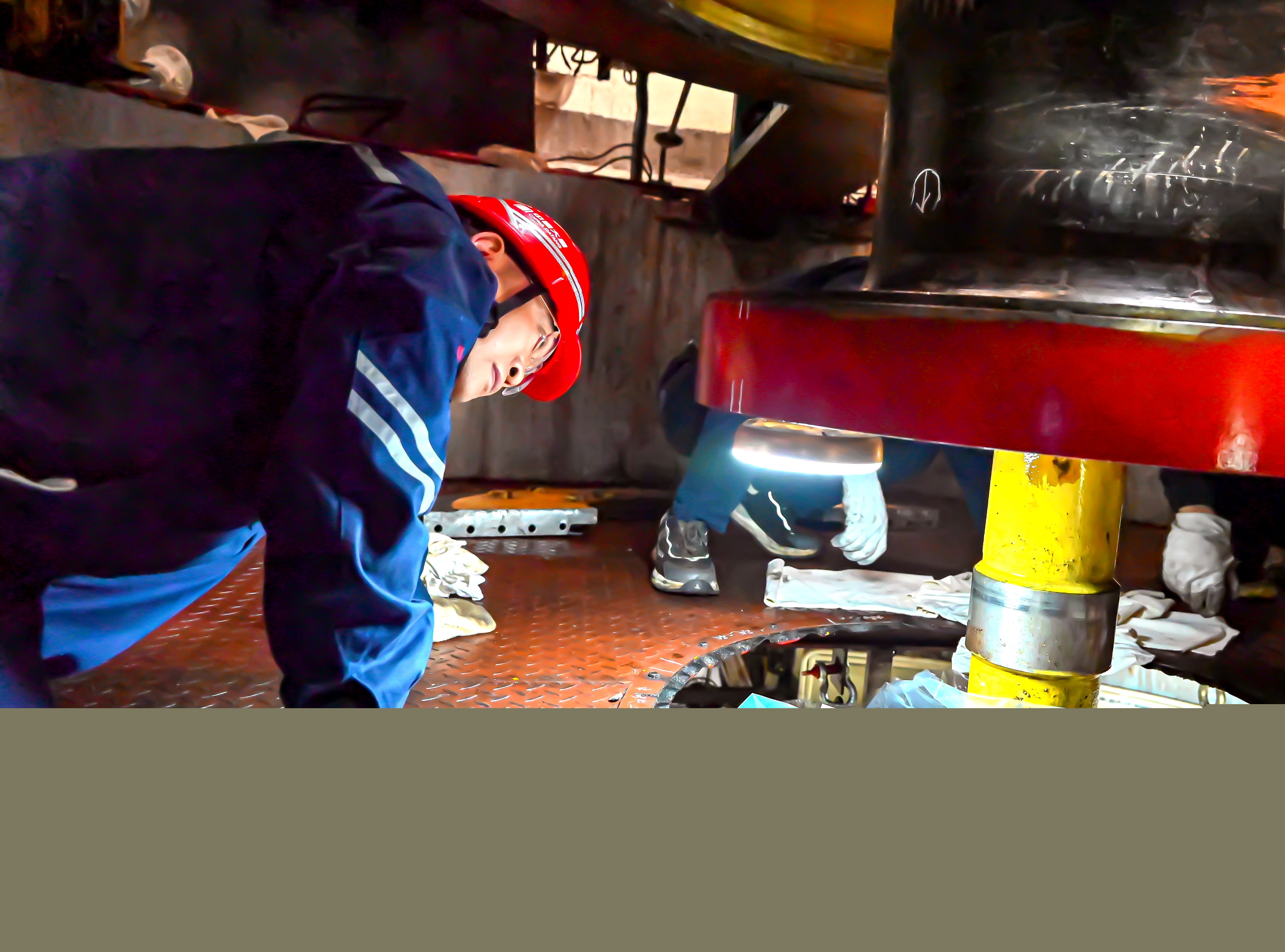 現場業主帶班人劉慶聞訊,立刻擠過人群,俯身仔細查驗推力頭與鏡板的結合面。