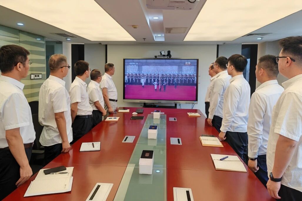 桂冠電力組織干部職工集中收看九三閱兵直播,共同感受國家的強大與民族的自豪。