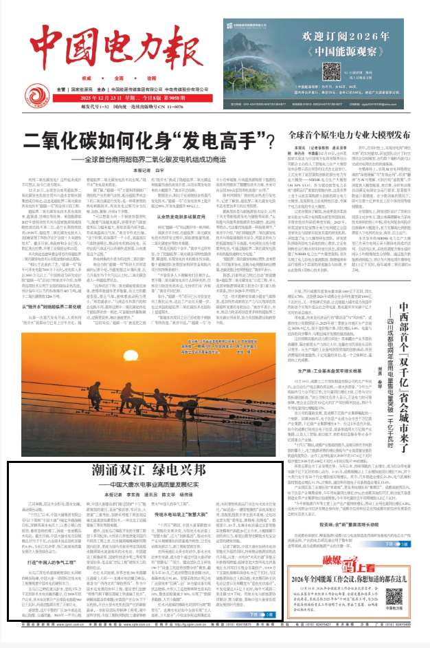 [中國電力報]2025-12-23-3版?潮涌雙江?綠電興邦-中國大唐水電事業高質量發展紀實