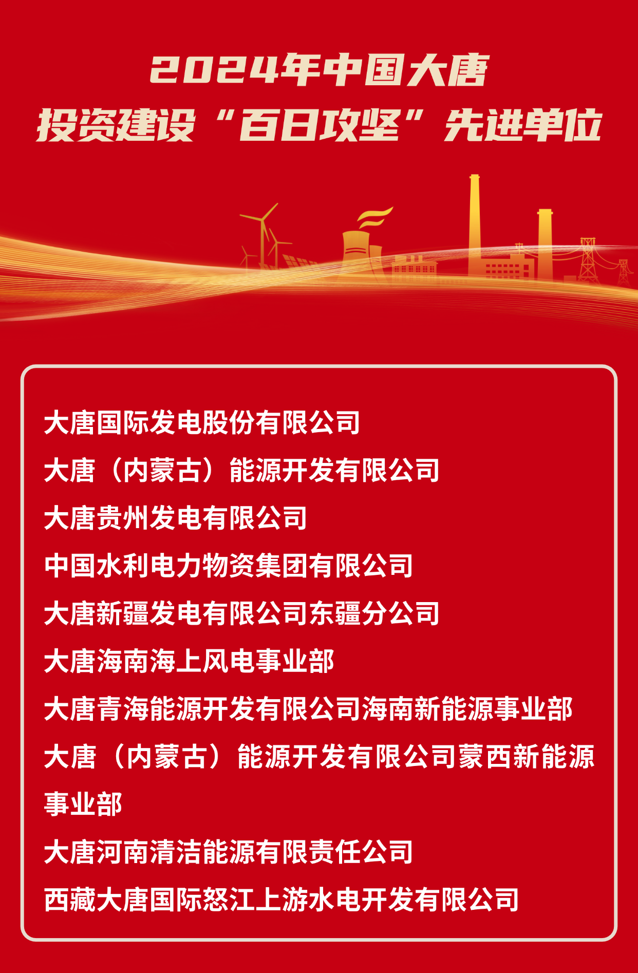 2024年中國大唐集團有限公司投資建設“百日攻堅”先進單位