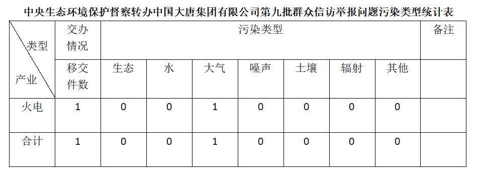 2025年6月12日,中央第七生態(tài)環(huán)境保護(hù)督察組向中國大唐集團(tuán)有限公司移交第九批群眾信訪舉報(bào)件,共計(jì)1件,為來電舉報(bào),涉及大氣問題1個(gè)。所有舉報(bào)件辦理工作已第一時(shí)間進(jìn)入調(diào)查核實(shí)辦理程序,辦理情況將按照相關(guān)要求反饋督察組,并及時(shí)向社會(huì)公開。