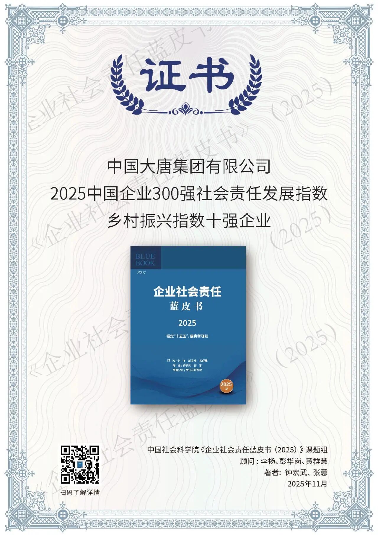 在本屆責任展上,中國大唐憑借在社會責任與ESG領域的全面深耕,獲得了多項認可。