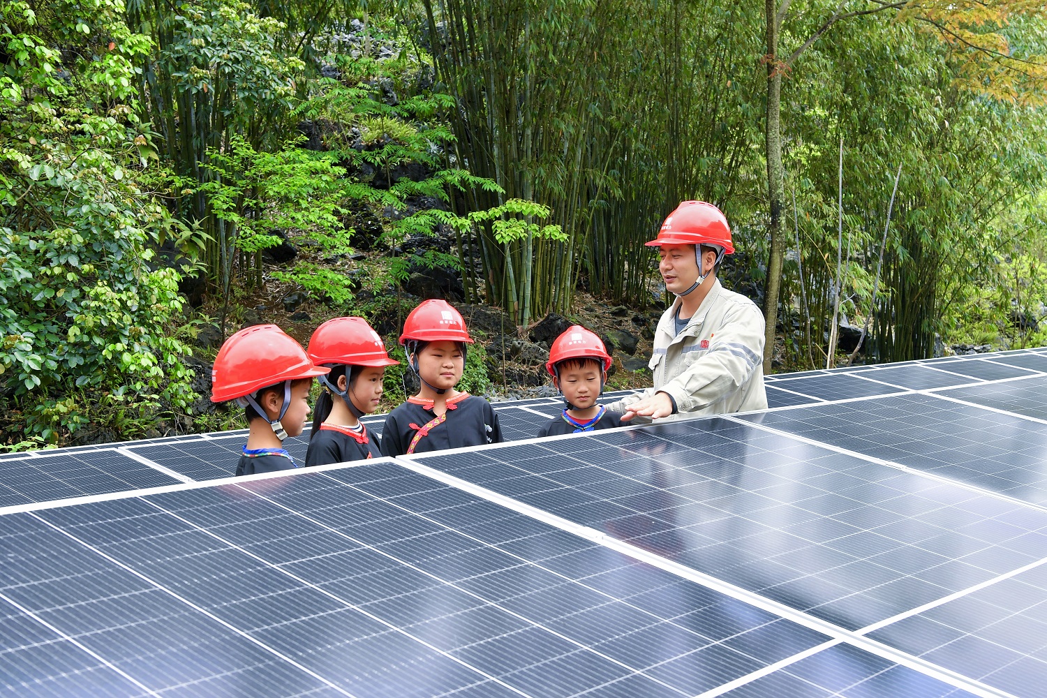 李云給學生們介紹光伏設備