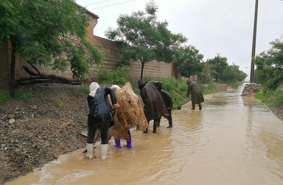 距離黃大媽家20多米處,水就已經沒到膝蓋。其他好多村民拿著盆子從家里往屋外舀水,但幾乎起不到作用,路面上的積水還是不斷地往屋里倒灌。我蹚著水走到十字路口,雨水已經沒到我的大腿。此時我突然發現這里比別處都低,雨水無法排出,積水從四面全涌過來。我趕緊把黃大媽和其他村民叫了過來,鋤頭鐵鍬一起上。挖了半天,總算有一條排水溝。可是,距離較遠,水溝還是有點高,只排走了部分積水。